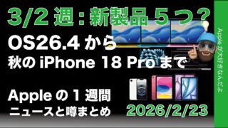 3/2週に5新製品?OS26.4にiPhone 18 Pro/折りたたみの噂Appleの1週間:噂とニュースまとめ20260223