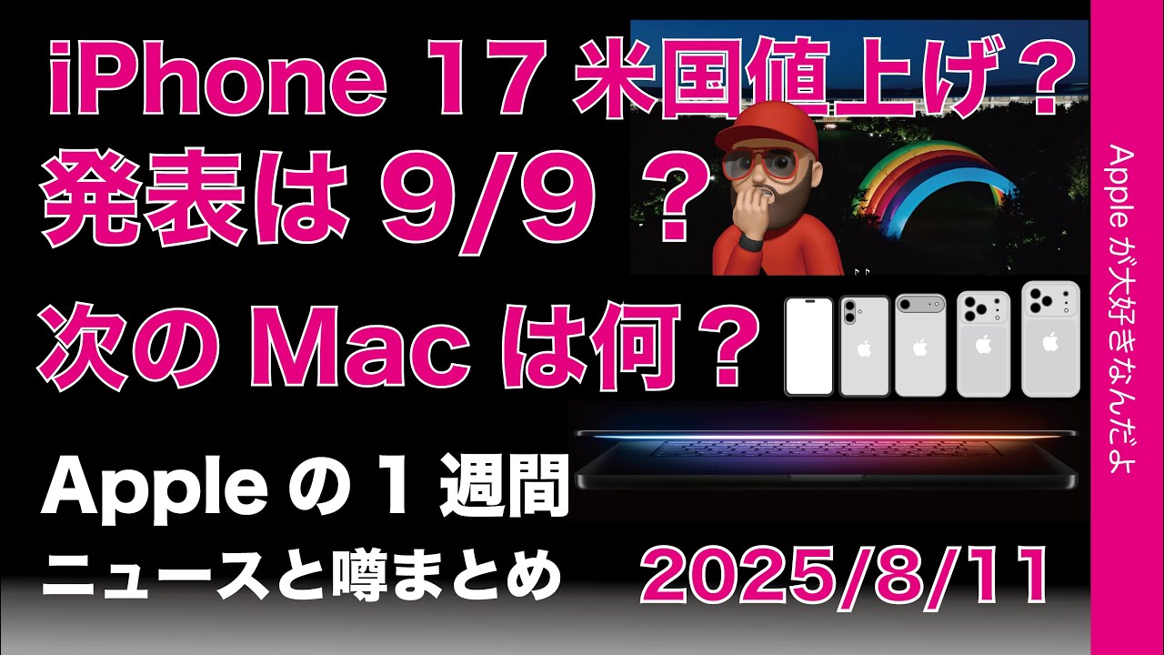 iPhone 17米国値上げ?イベントは9/9?次のMacは?などAppleの1週間:噂とニュースまとめ20250811