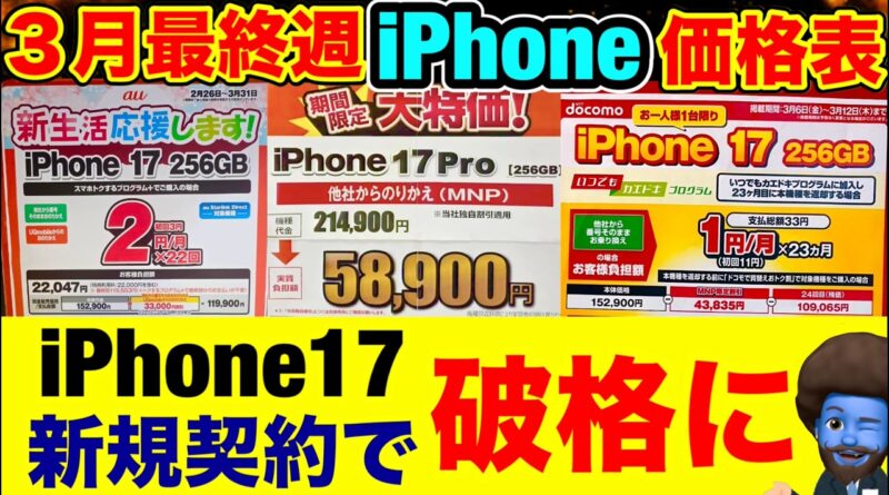 「1円」「投げ売り」「投げ貸し」iPhone・スマホ!2026年3月28日(土)家電量販店【ドコモ・au・ソフトバンク・楽天モバイル】iPhone17/17e/16。Pixel 9a/10。一括も