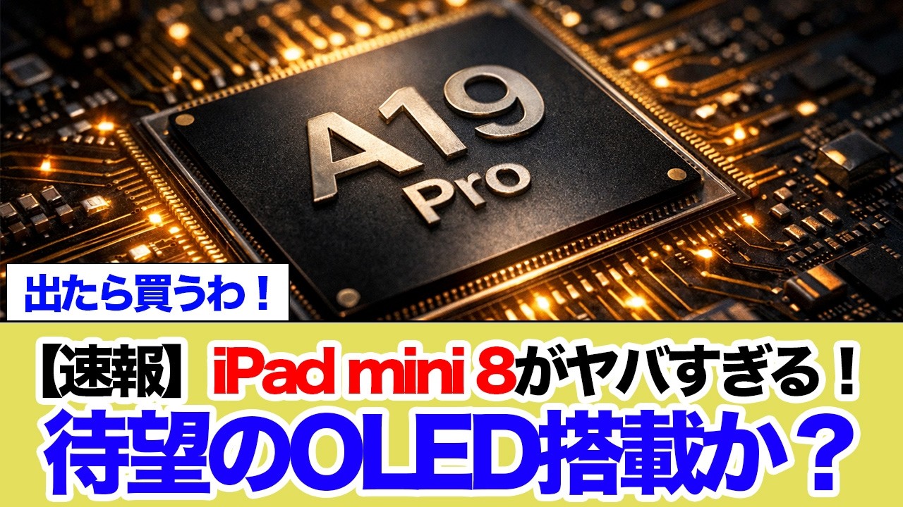 今回は、2026年登場と噂される「iPad mini 8」の最新リーク情報を徹底深掘り!待望のOLED(有機EL)ディスプレイ搭載やA19 Proチップによる圧倒的進化が期待される一方で、60Hzの据え置きや価格高騰という絶望的な懸念点も浮上しています。コンパクトタブレットの覇権を握る神機となるか、それとも妥協の産物か?ガジェットオタクの視点で容赦なくジャッジします!