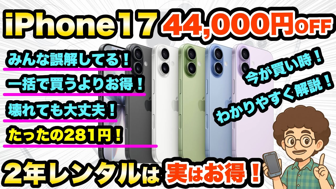 【iPhone17が驚きの44,000円引き!】2年レンタルは実はお得!激安iPhone スマホ 機種変更 乗り換え MNP アハモ ドコモ ahamo