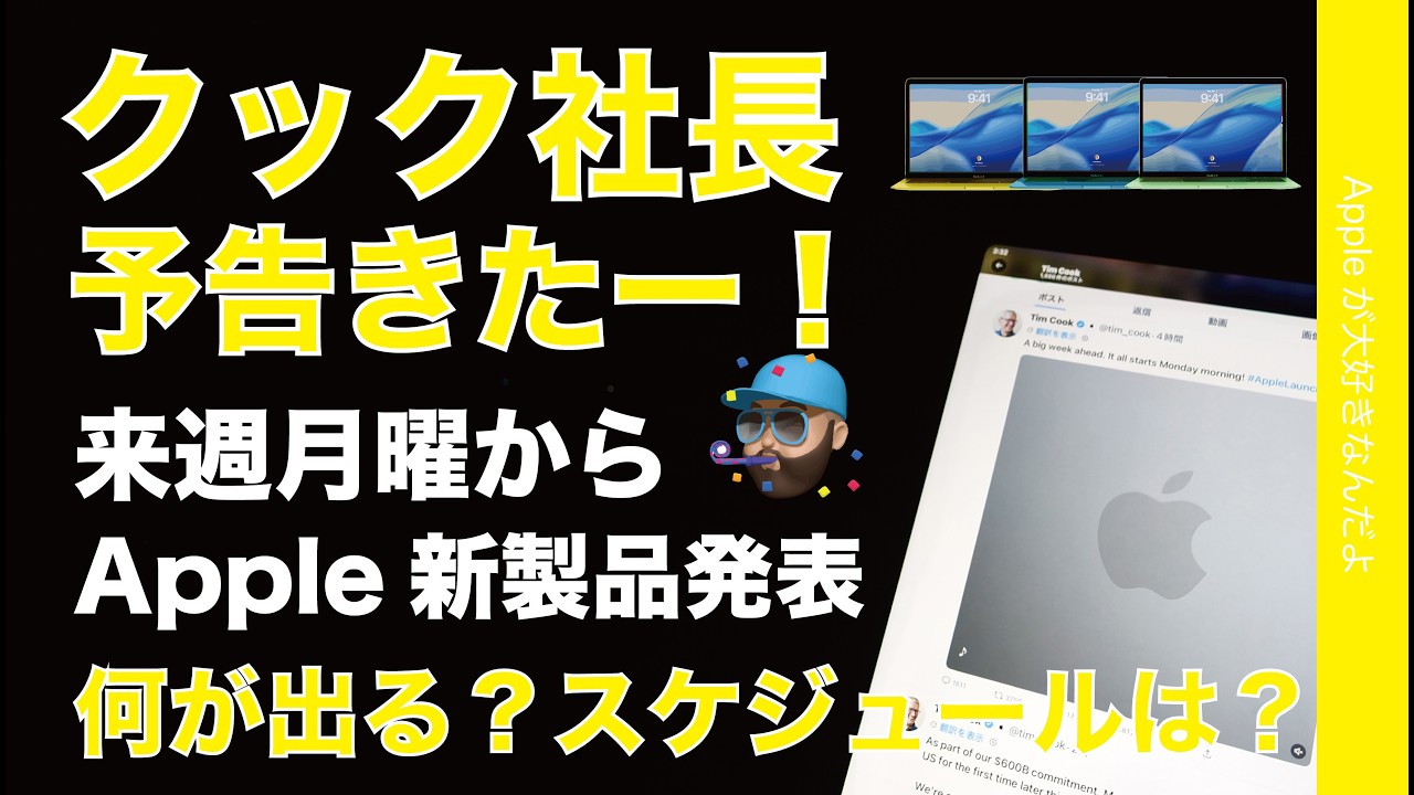 【速報!やっと一般向け予告】Apple新製品3/2月曜から発表へ!クックCEOのX投稿きたー!何が出る?まとめとスケジュール予想