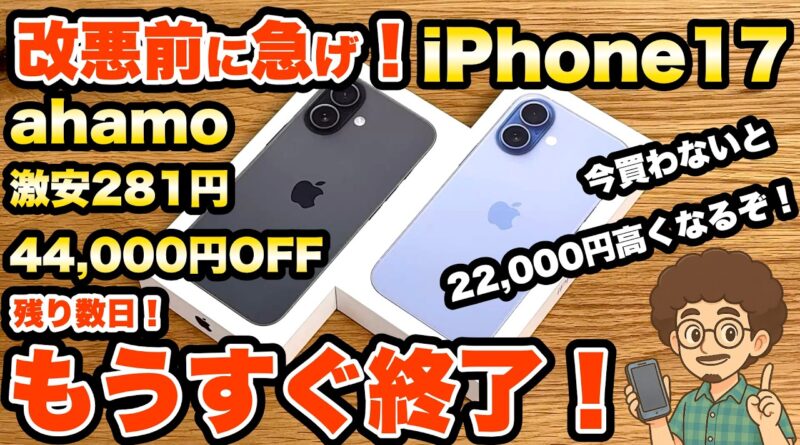 改悪前に急げ!アハモのiPhone17が44,000円オフで激安281円!