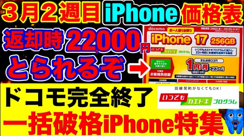 【3/6〜】二年返却が高い時代に。2026年のiPhoneの賢い買い方!iPhone17e/17Pro/17/16/16e価格を徹底比較。改悪後の購入先はここだ!
