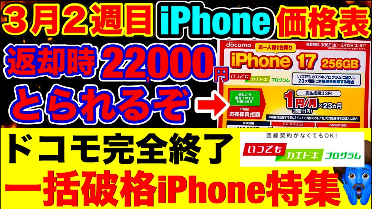 【3/6〜】二年返却が高い時代に。2026年のiPhoneの賢い買い方!iPhone17e/17Pro/17/16/16e価格を徹底比較。改悪後の購入先はここだ!