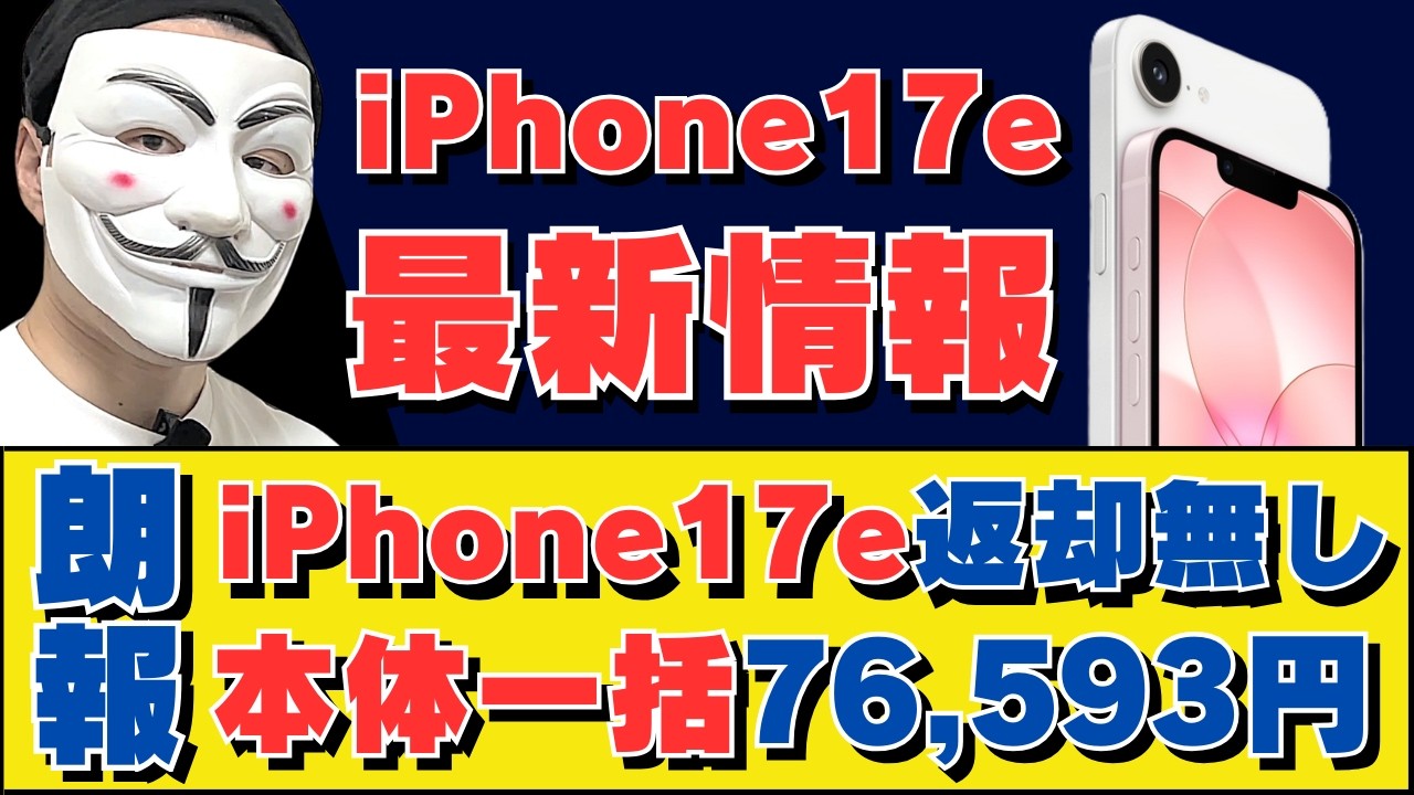 今回の動画では2026年3月現在でiPhone17eを安く買う方法と各携帯キャリアのお得なキャンペーン情報を紹介する。