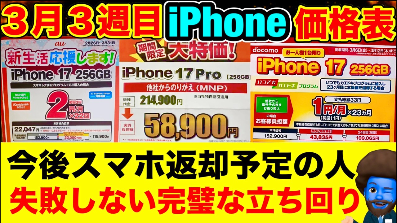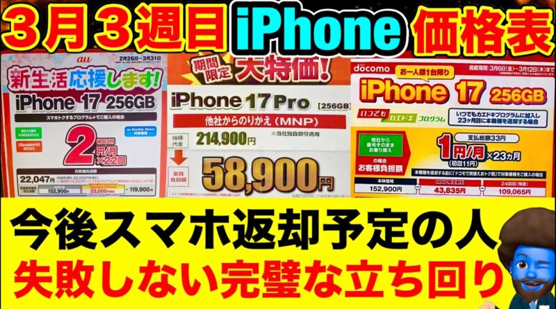 【スマホ2年返却予定の人必見】返却から購入までミスしない2年後の完璧な立ち回り【3/14〜】iPhone17e/17Pro/17/16/16e価格を徹底比較。