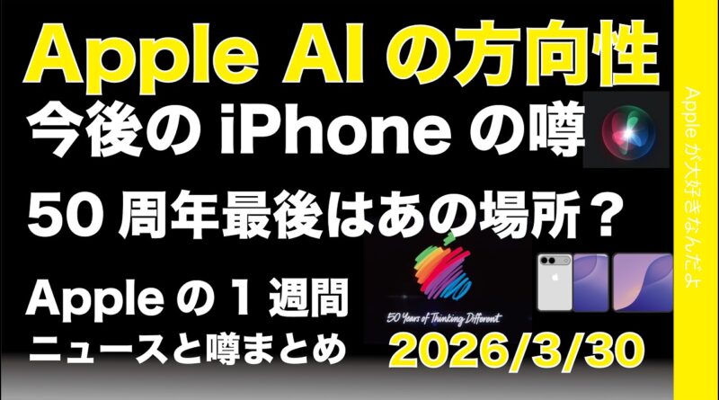 AIの方向性が変わる?新型iPhoneの噂、50周年最後はあの場所?Appleの1週間:噂とニュースまとめ20260330