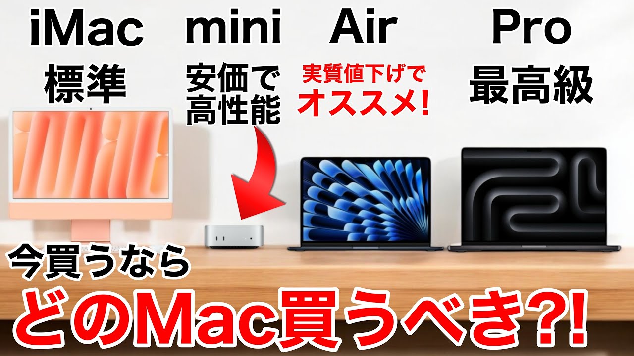 M4のMacシリーズを含め、どのMacを買うべきか、性能の違いや価格一覧での解説、そもそも各MacはどんなMacなのかまで丁寧に解説しています。