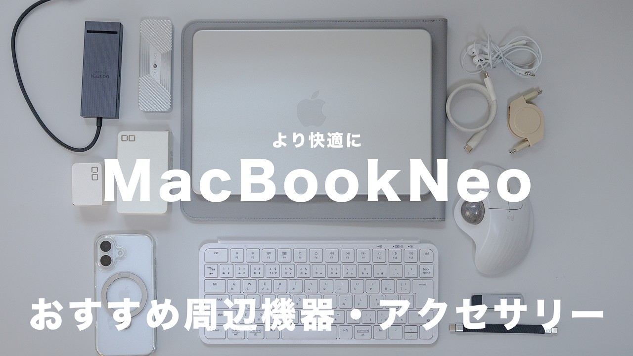 MacBook Neo に実際に合わせて使っている周辺機器を16点、丁寧にまとめて紹介しています。