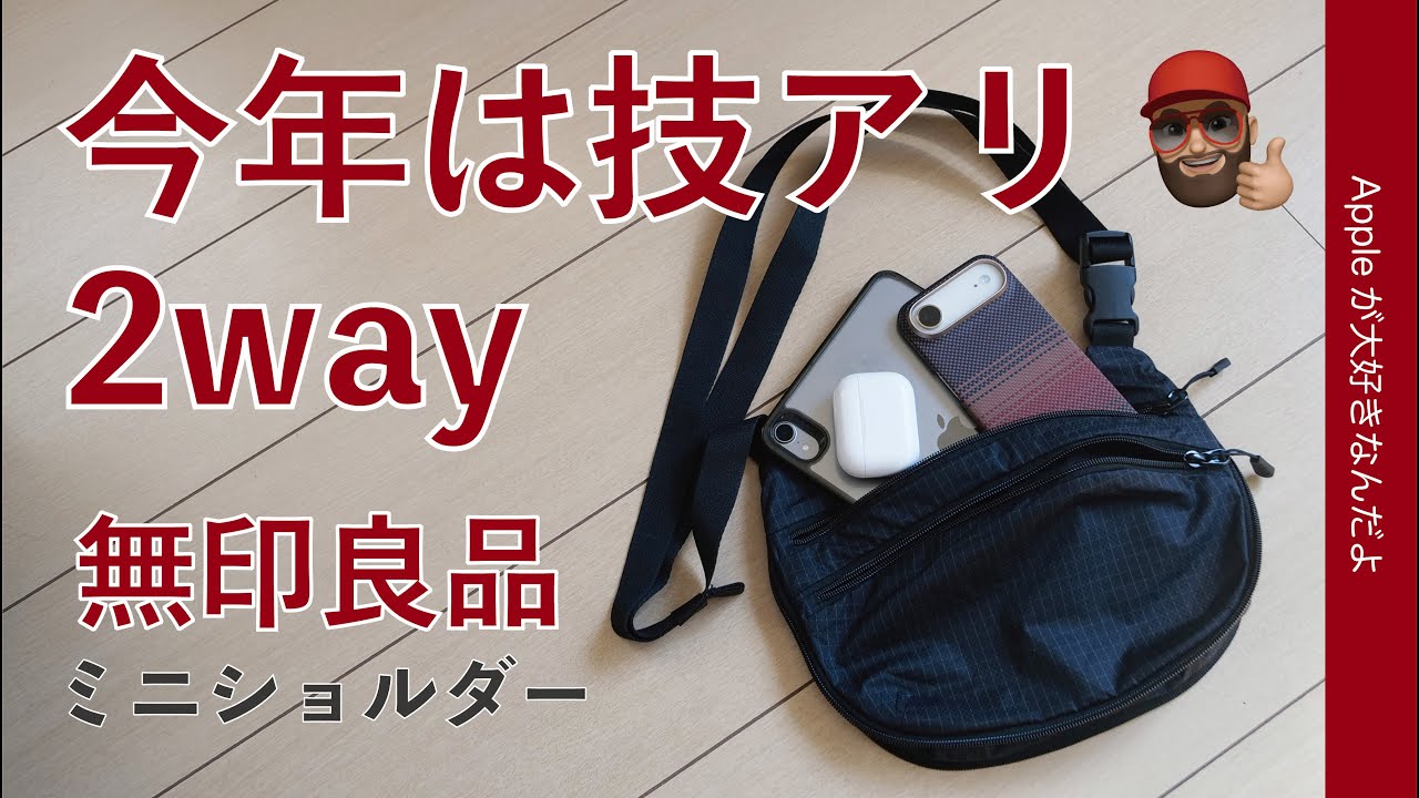 【技アリ】今年の無印良品ミニショルダー新製品!Apple製品中心に色々入れてみた・コンパクトなのに飲み物買っても安心!